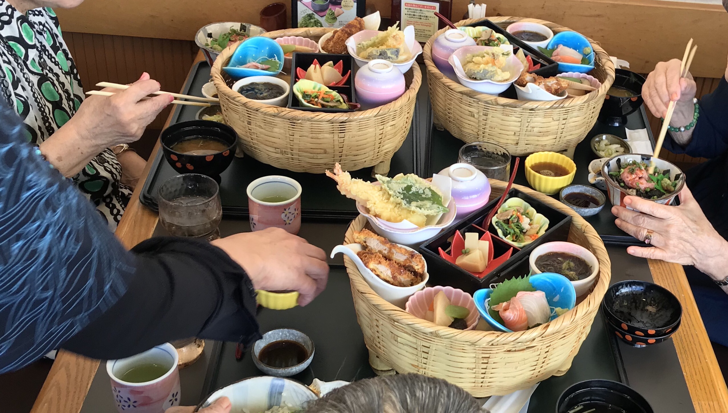 敬老会は、北谷町にある商業施設サンエーハンビータウンの和風亭。オーダーは、予めメニューの中から利用者さんが食べたい物を選んでいただきました。