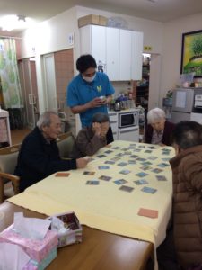 みなさん真剣な表情でカルタしてます。勝負ごとになるとスイッチが入りけっこう熱くなりますよ~